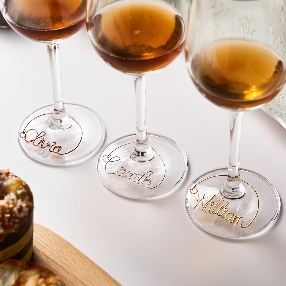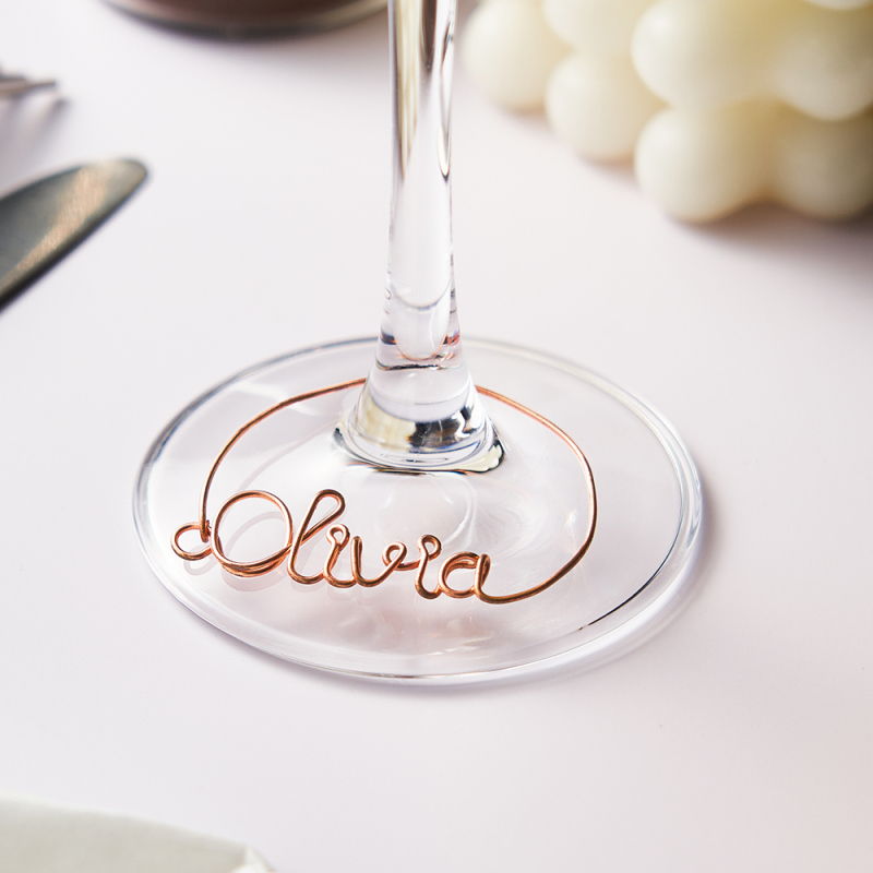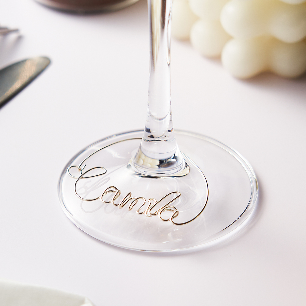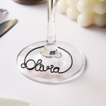 The custom wine glass charms will add a personalized touch to your special event, wedding or bachelorette party.