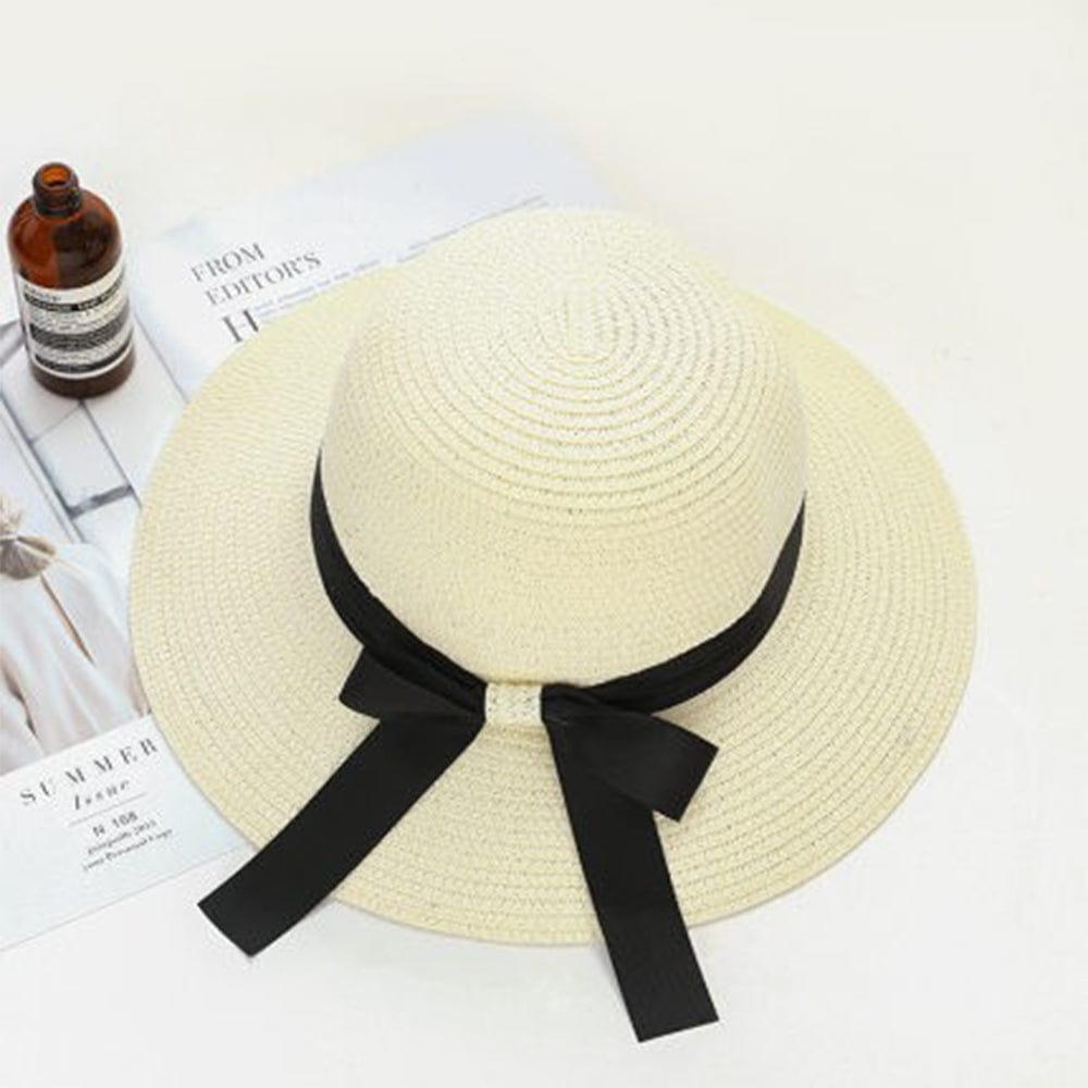 Women Sun Protection Straw Hat Beach Wide Brim Bow-Knot Big Floppy Folding Sun Hat
