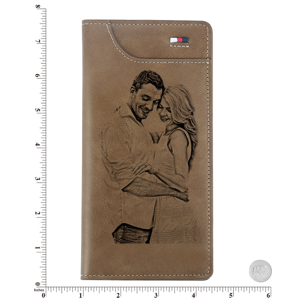 Women's Custom Engraved Photo Wallet Brown Leather