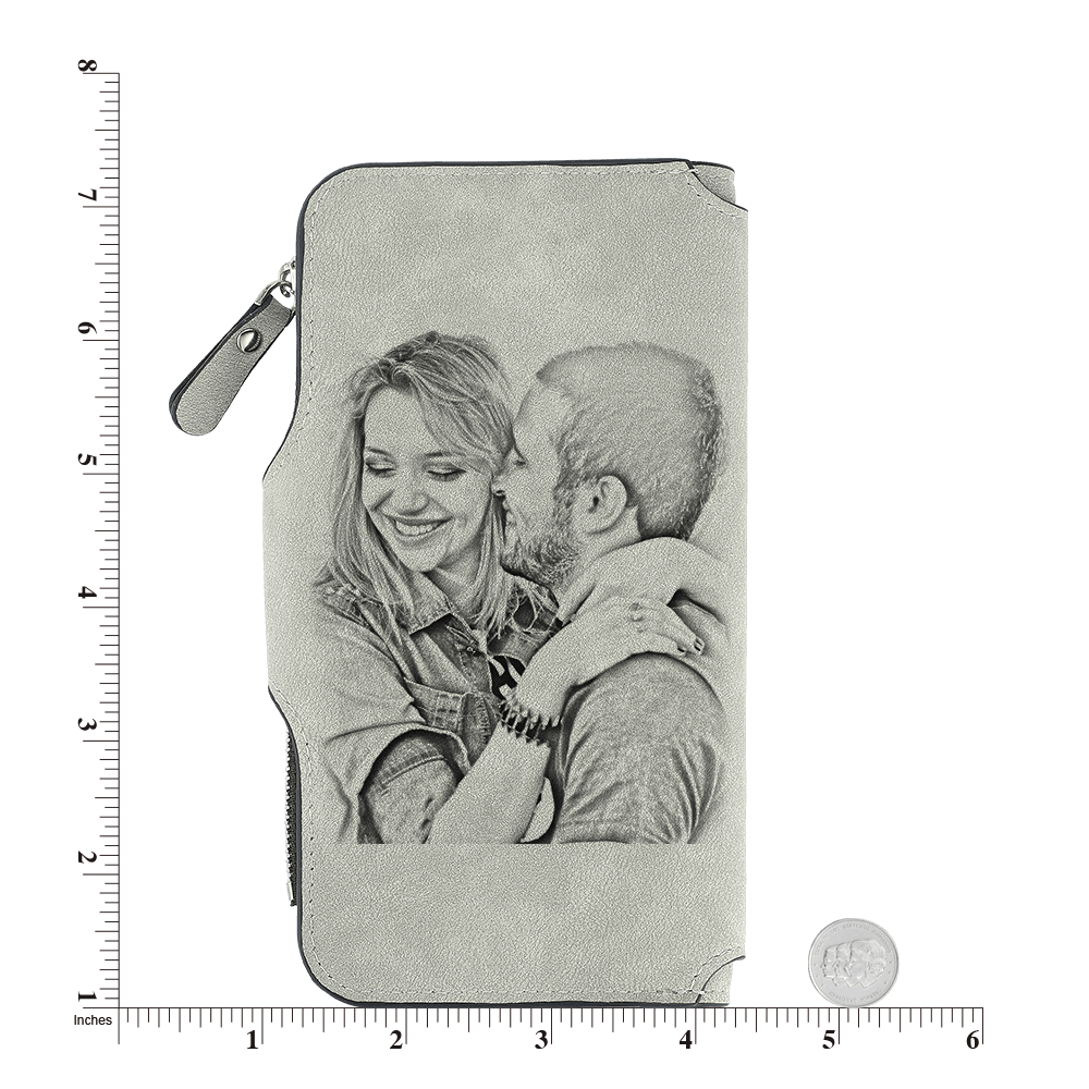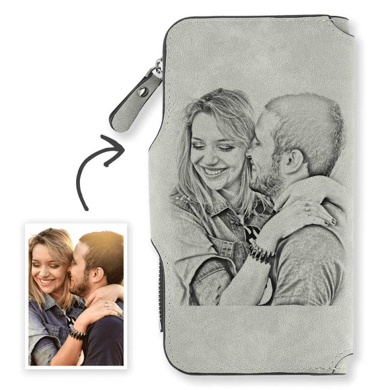 Gifts For Woman - Women's Long Style Custom Photo Wallet Grey Personalized Wallets