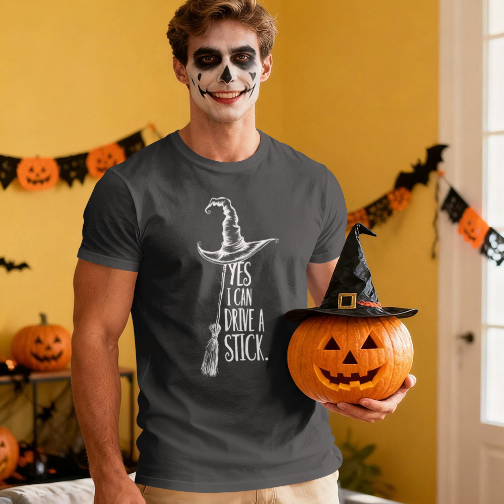 Yes I Can Drive A Stick T Shirt, Funny Halloween Witch Tee for Women, Spooky Party Shirt, Cute Halloween Gift Top, Witchy Costume Outfit